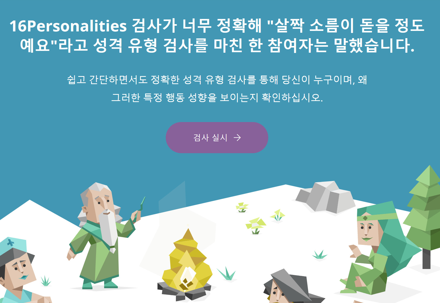 아래 버튼을 누르시면 국내 MBTI 무료 테스트의 가장 대표 홈페이지인 16 personalities로 이동해서 MBTI 테스트 및 결과 해석을 볼 수 있습니다. 최근 질문사항이 업데이트 된 곳 역시 이 홈페이지입니다.