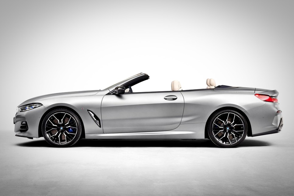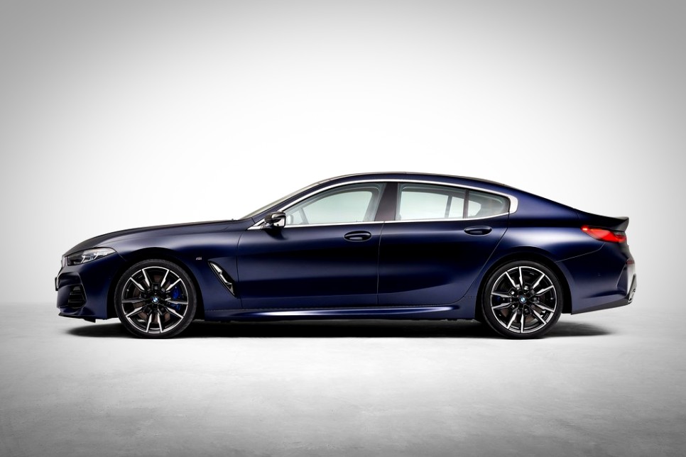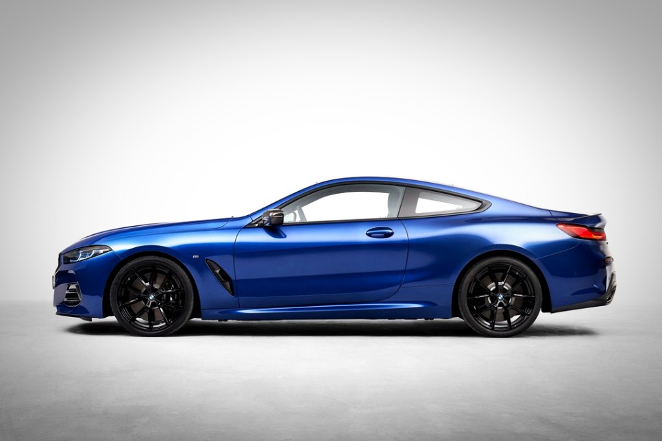 여기에 키드니 그릴과 아이코닉 글로우(Iconic Glow) 조명이 들어와 더욱 세련되고 미래적인 인상을 더했습니다. 전면부 키드니 그릴에는 U자형 수직바가 삽입되었습니다. 또한 공기흡입구 디자인이 변경되었고, 차량에 신규 휠이 추가되었습니다. 이번 8시리즈에는 모두 M스포츠 패키지가 적용되었습니다.