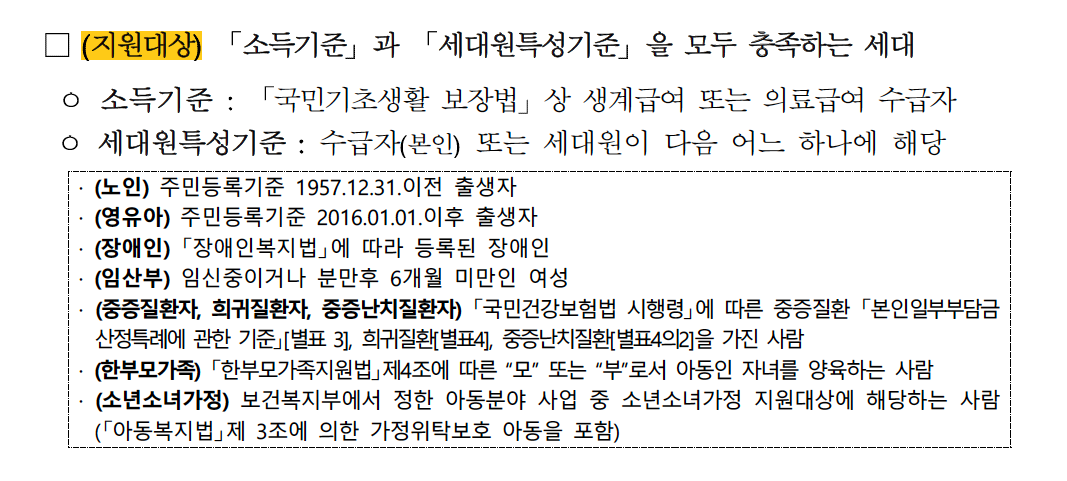 - 노인, 영유아 장애인, 임산부, 중증질환자, 한부모가족, 소년소녀가정