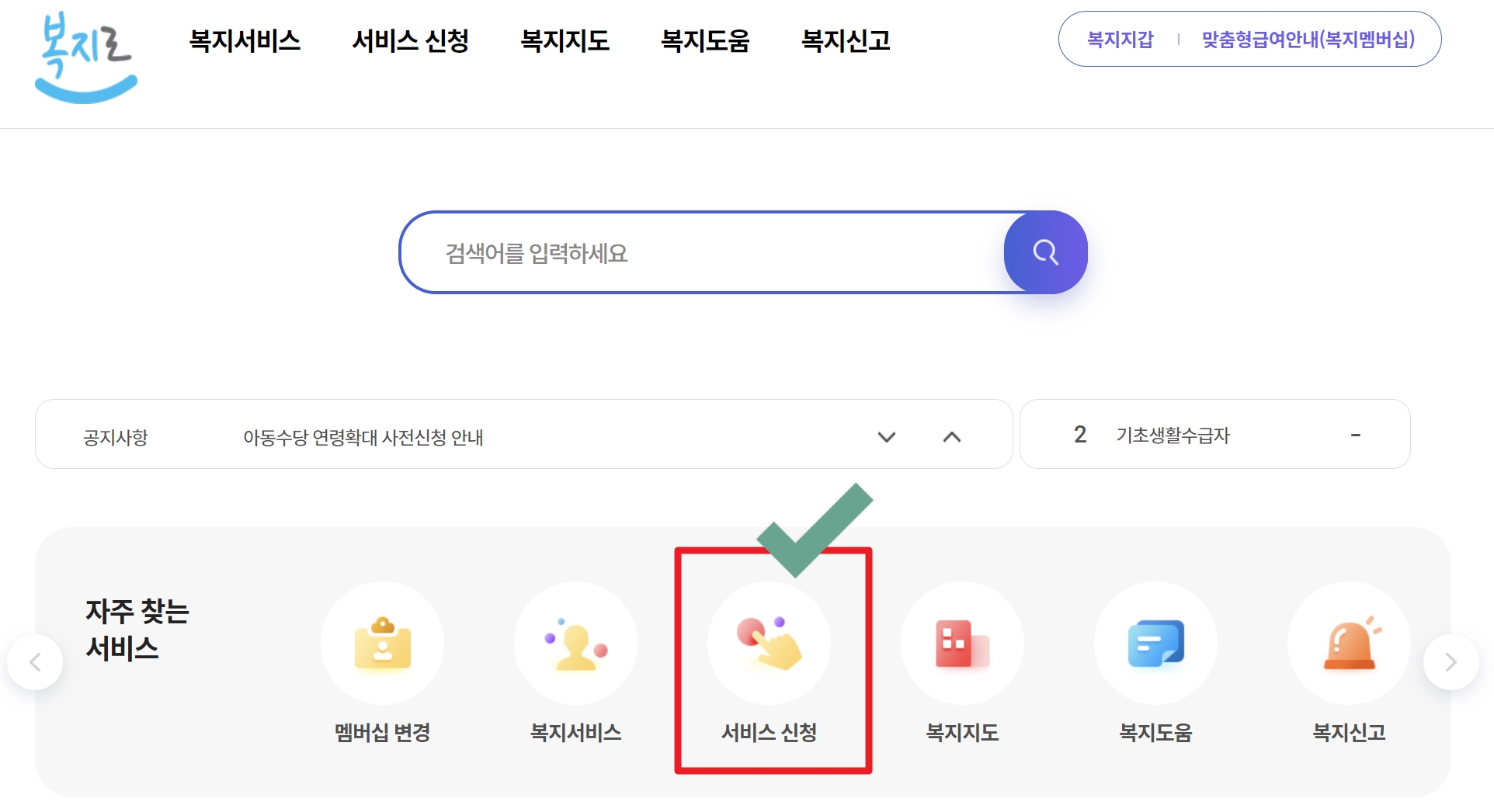 1) 복지로 홈페이지에 로그인합니다.